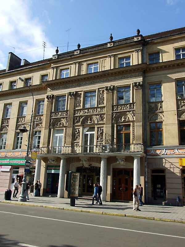 2008 р. Правий портик Розмір зображення: 600:800 піксел 13 вересня 2008 р. Фото М.І.Жарких. Вкладені елементи Ліва частина (+) Центральна частина (+) Права частина (+) Лівий скульптурний кронштейн Центральний скульптурний кронштейн Правий скульптурний кронштейн