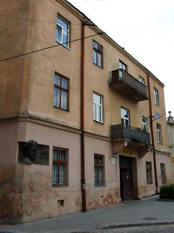 2008 р. Чільний фасад Розмір зображення: 600:800 піксел 16 жовтня 2008 р. Фото М.І.Жарких. Вкладені елементи Меморіальна дошка І.Франку