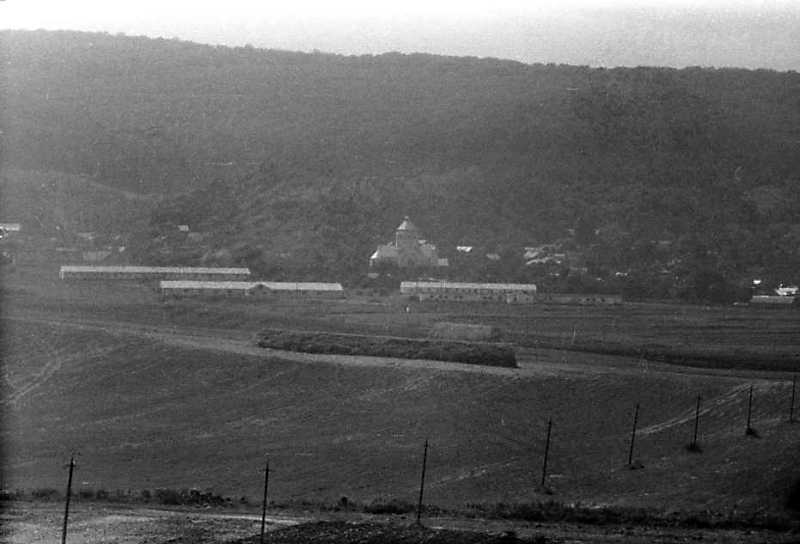 Панорама села з церквою. Вигляд з північного сходу. 1990 р. 15 серпня. Фото М.І.Жарких. Негатека, № 660-20.