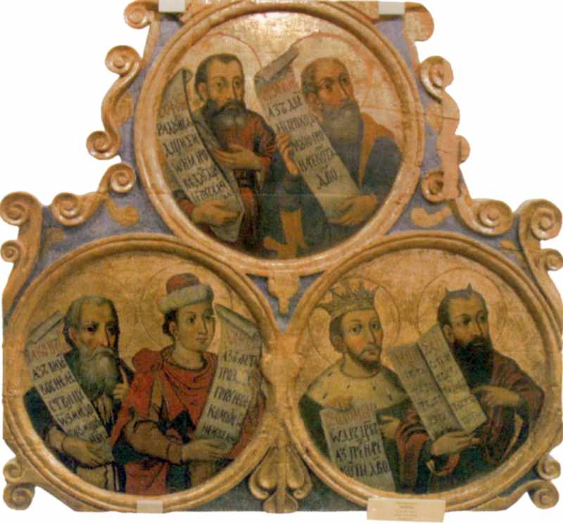 Частина пророчого ряду іконостаса, м. Локачі Розмір зображення: 800:745 піксел Вкладені елементи Пророки Софонія та [?] Пророки Яків та Даниїл Цар Соломон та пророк моісей