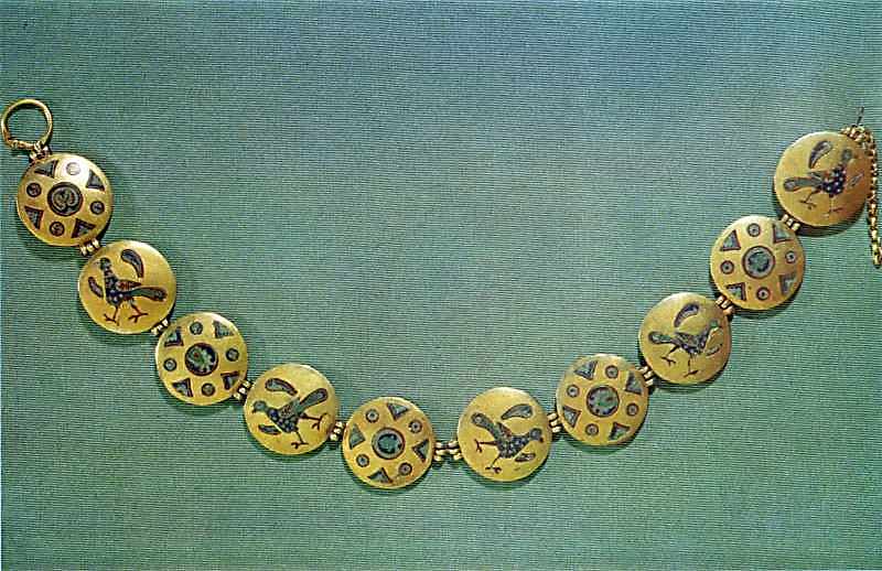 Рясни, 12 ст.Розмір зображення: 800:518 піксел Рясны Золото. Перегородчатая эмаль XII – первая треть XIII в. Государственный Исторический музей. Джерело: Рыбаков Б.А. Русское прикладное искусство 10 – 13 вв. – Лг.: 1971 г., с. 35. |