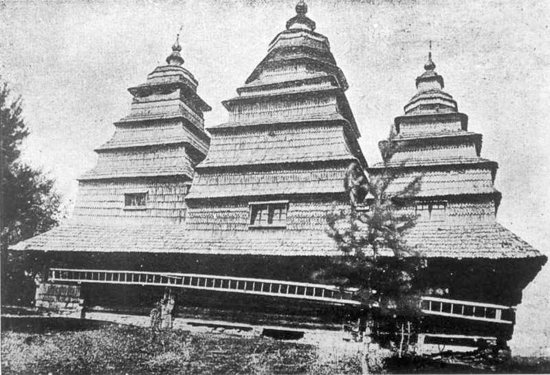 [2]Розмір зображення: 800:545 піксел Занепала на поч. XX ст. Світлина з книжки М. Драґан «Українські деревляні церкви», Львів, 1937. Джерело: Слободян В. Церкви України: Перемиська єпархія. – Льв.: 1998 р., с. 109. |