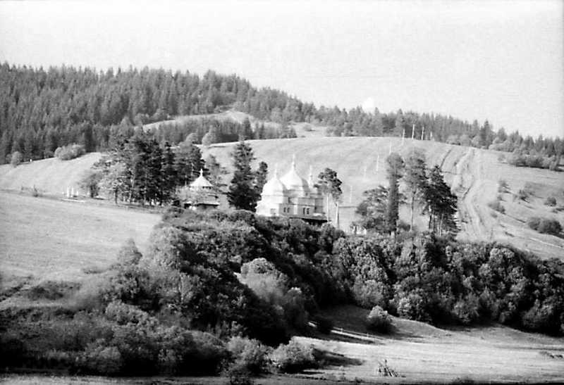 1990 р. Краєвид з церквою. Вигляд з південного заходу