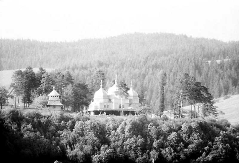 1990 р. Краєвид з церквою. Вигляд з південного заходу