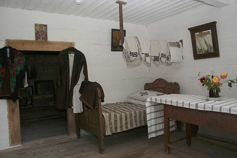 2006 р. Двері та задня стіна Розмір зображення: 800:533 піксел Фото Зенона Боровця, 9 серпня 2006 р. Вкладені елементи Селянський одяг на жердині