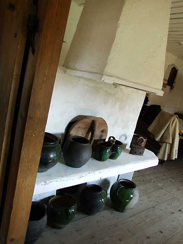 На припічку – не тільки полив’яні горщики, але й чавунна праска. Це ознака статечного господарства.
