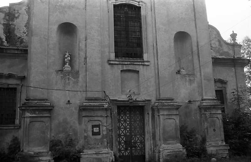 1989 р. Нижня частина західного фасаду. Вигляд із заходуРозмір зображення: 800:516 піксел 1989 р. 28 червня. Фото М.І.Жарких. Негатека, № 492-11. |