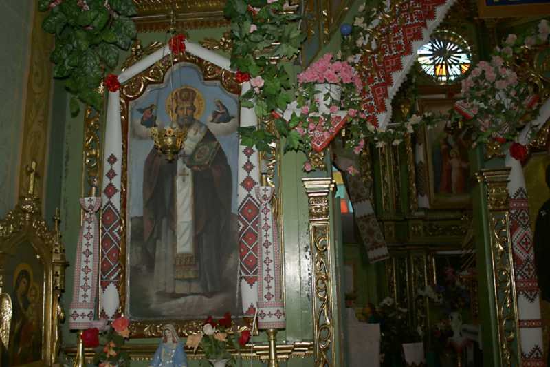 Ікона св. МиколаяРозмір зображення: 800:533 піксел Фото Зенона Боровця і Богдана Тхора, 5 серпня 2011 р. Намісний ряд, ліва частина. |