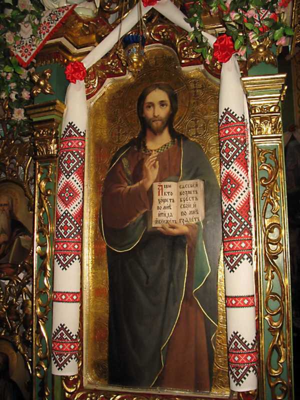 Ікона «Христос учитель»Розмір зображення: 600:800 піксел Фото Зенона Боровця і Богдана Тхора, 5 серпня 2011 р. У правому нижньому куті ікони є підпис майстра: «J. C. 1906». |