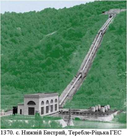Теребле-Ріцька гідроелектростанція (ТРГЕС), 1949-1956 (іст.). Унікальна гідроелектростанція, що стоїть на двох річках водночас.