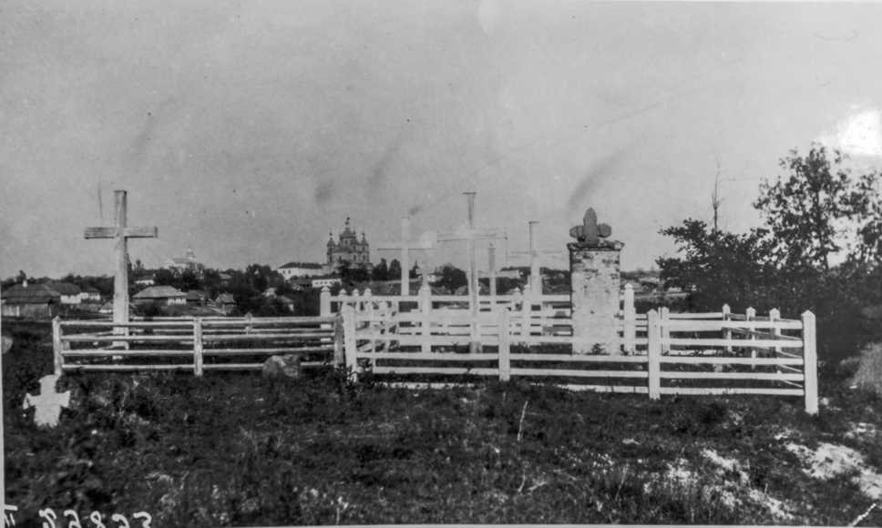 Заручаївський цвинтарРозмір зображення: 968:580 піксел Вигляд із заходу. На обрії – Спаський собор. Фото П. П. Покришкіна 1906 р. |