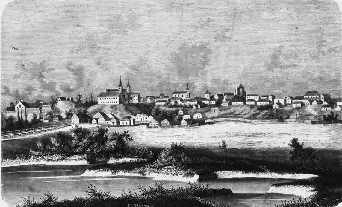 Панорама м. Овруч. Дереворит. Автор Edward Gorazdowski. 1863 р. Гравюра надрукована у Tygodnik Ilustrowany nr 240 z 30.04.1864 s.161.
