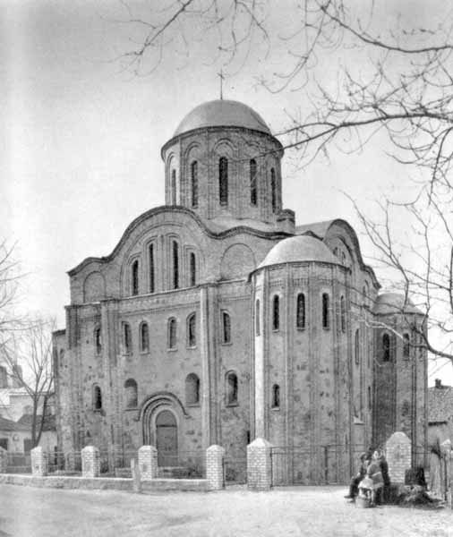 Храм св. Василия (XII в.) в плане трехнефный, четырехстолпный, с двумя башнями у притвора, где находились лестницы для входа на хоры. С востока он имеет три апсиды и увенчан одним куполом (длина 25 м, высота до зенита купола 25 м). Во время татаро-монгольского нашествия храм сильно пострадал; в 1908-1912 гг. был восстановлен по проекту архитектора А. В. Щусева, при консультации П. П. Покрышкина. В откосах проемов окон сохранились фрагменты фресок XII в. Иконостас исполнен по проекту Щусева.
