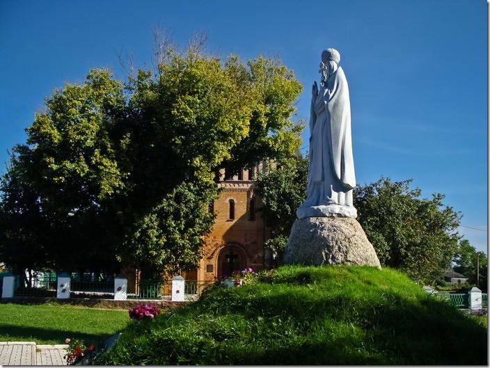 2010 р. Пам’ятник (св.Василю?) перед церквоюРозмір зображення: 704:529 піксел Фото – Вадим Войтик. Опубліковано 21.10.2010.