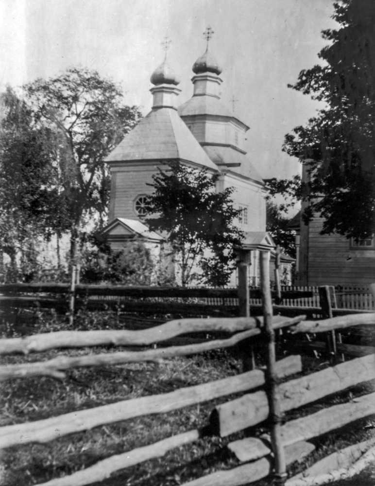 Відомий дослідник Федір Волков [справж. – Вовк Хв. К. – М. Г.] у 1910 р. описує церкву Святителя Миколи як “превосходный образец старинной деревянной архитектуры на Украине”. Посилаючись на світлини Городоцького Музею барона Ф. Штейнгеля, він зауважує: “Вся постройка отличается замечательной выдержанной, гармоничной и благородством форм, заставляющими жалеть о том варварстве, с которым, в стремлении стереть все местные особенности края, потребляются самые дорогие памятники старинного вполне самобытного искусства” [Волков Ф. К. Старинные деревянные церкви на Волыни. – С.Пб., 1910. – С. 7, 14-17, ил.]. Дерев’яна дзвіниця при церкві в цій монографії описана як існуюча, й репродукована в ній світлина тотожна до поданої тут. Заміну старої дерев’яної церкви новою і, певно, мурованою можна датувати кінцем XIX – початком XX ст. [Марія Гончаренко Коментар до світлин архітектурних об’єктів Волині з архіву Бориса Реріха (10.11.2019 р.) ]