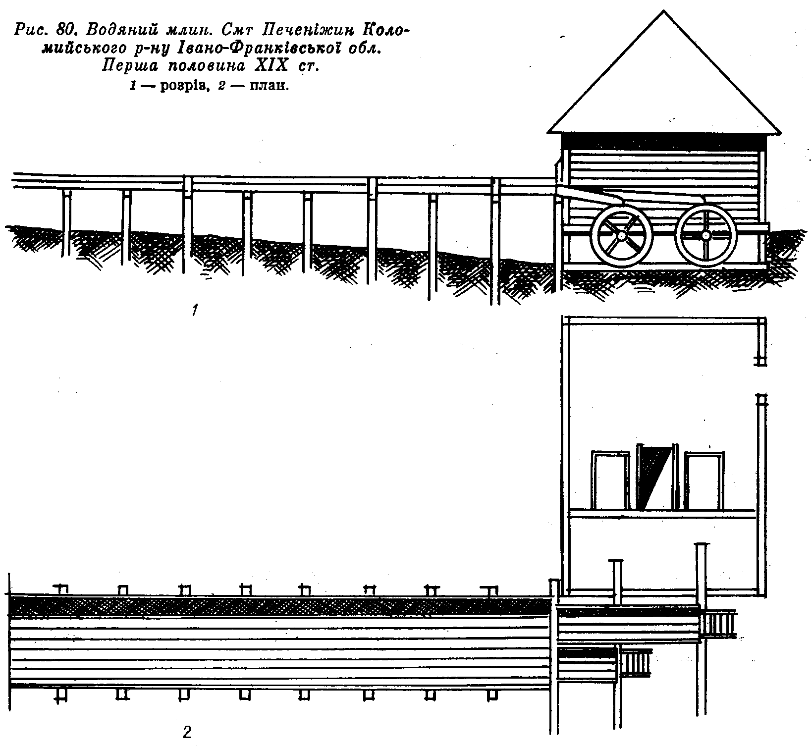Водяний млин. Смт Печеніжин Коломийського р-ну Івано-Франківської обл. Перша половина XIX ст.