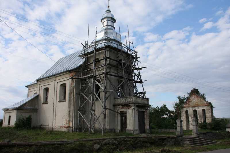 Костел Розмір зображення: 800:533 піксел Фото Зенона Боровця і Богдана Тхора, 10 серпня 2011 р. Вкладені елементи 2011 р. Загальний вигляд з позиції А3 2011 р. Загальний вигляд з позиції С3 2011 р. Загальний вигляд з позиції А4 2011 р. Загальний вигляд з позиції С4 2011 р. Дзвіниця 2011 р. Пам’ятна таблиця