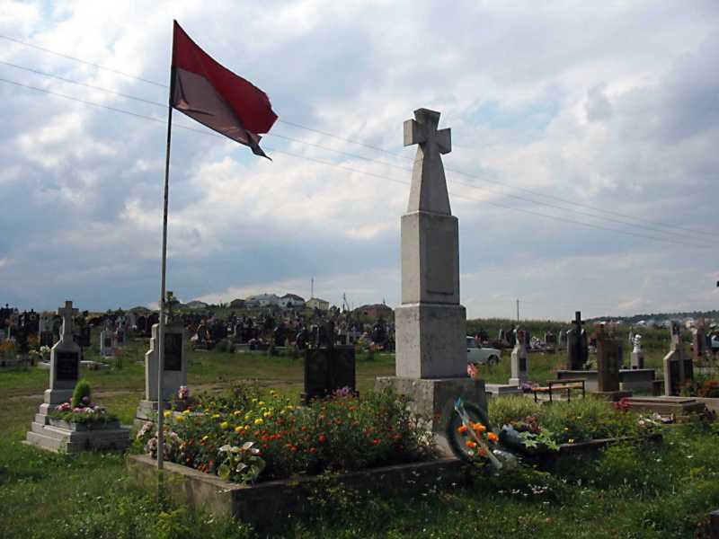Цвинтар Розмір зображення: 800:600 піксел Фото Зенона Боровця і Богдана Тхора, 9 серпня 2012 р. Вкладені елементи Могила М. Ковч (+) Могила М. Столярчука (+) Капличка (+) Пам’ятний знак борцям за полю України (+) Пам’ятний хрест жертвам московського терору (+) Пам’ятний хрест жертвам московського терору (2) (+) Пам’ятний хрест січовим стрільцям (+)