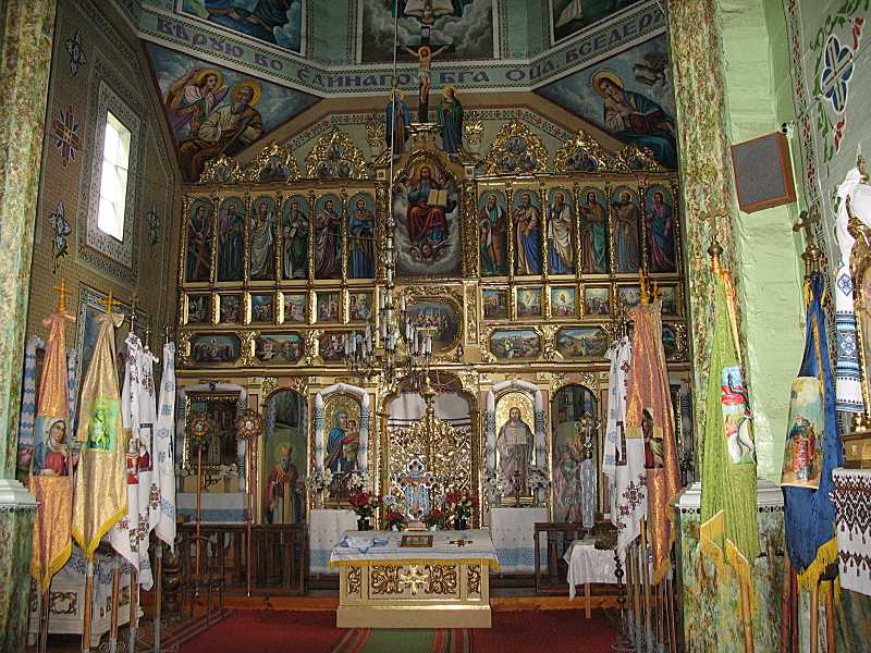 Інтер’єр з видом на іконостасРозмір зображення: 800:600 піксел Фото Зенона Боровця і Богдана Тхора, 7 вересня 2006 р. |