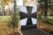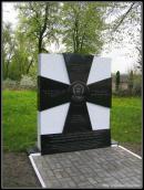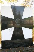 На цоколі напис: «У липні 2002 року з благословення високопреосвященнійшого архієпископа Рвненського і Острозького Даниїла, було відроджено чернече життя на Козацьких Могилах. Цей пам’ятний знак поставлено старанням братії монастиря за святійшого патріарха Київського і всієї Русі-України Філарета, за священноархімандрита високопреосвященнійшого митрополита Рівненського і Острозького Євсевія, за намісника – високопреподобного архімандрита Олексія року божого 2007-го місяця червня дня 10-го».