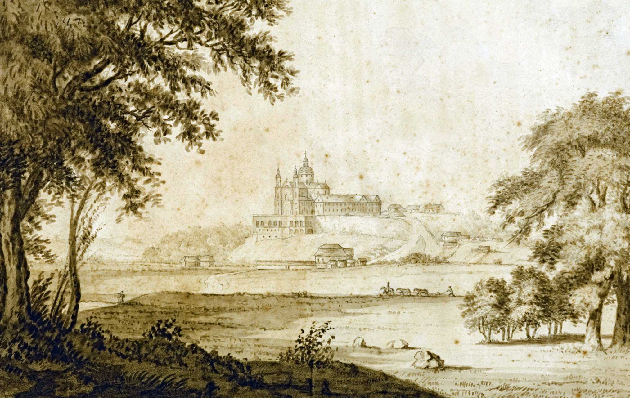 Сер. 19 ст. (?) Загальний вигляд з південного сходуРозмір зображення: 2030:1283 піксел Рисунок невідомого часу (сер. 19 ст.?) опубліковано на сторінці «Мандрівка старим кордоном» 8.02.2022 р. |