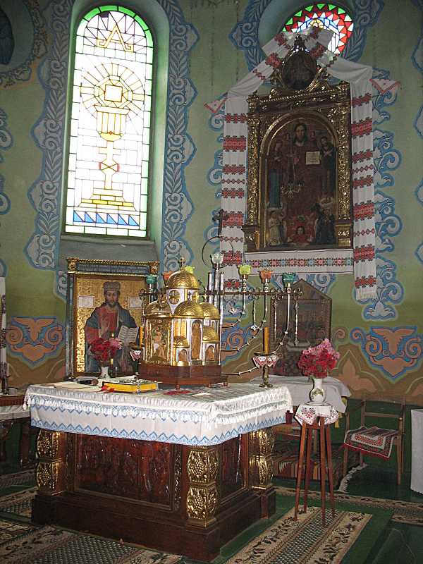 2007 р. Інтер’єр вівтаря з престоломРозмір зображення: 600:800 піксел Фото Зенона Боровця і Богдана Тхора, 22 жовтня 2007 р. |
