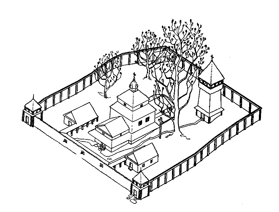 Церква св. Духа в Потеличі. XVI ст. Реконструкція П. Юpченка.