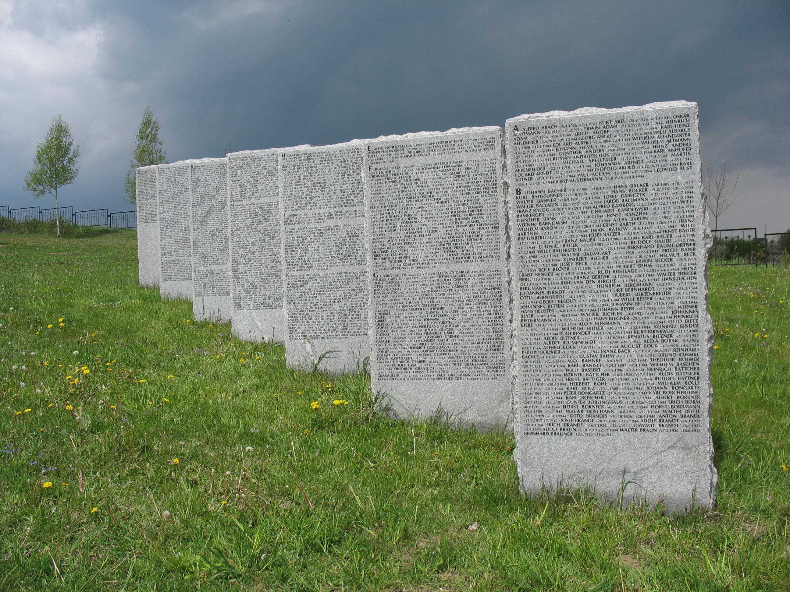 Стели з іменамиРозмір зображення: 2592:1944 піксел Фото Зенона Боровця і Богдана Тхора, 10 травня 2007 р. Імена на фото можна прочитати. Якщо ви маєте змогу їх переписати, надішліть нам – ми їх розмістимо. Можливо, хтось розшукує своїх родичів. |
