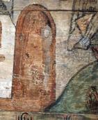 Авраамова офіра, 1607 р.Розмір зображення: 596:800 піксел Авраамова офіра. Стінопис давнього вівтаря церкви (нині це закристія), 1607 р. |