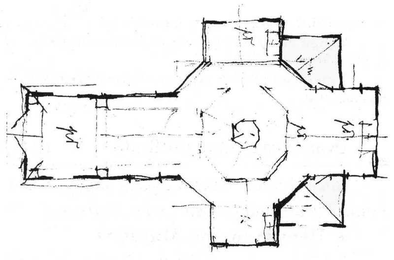 Схематичний план церкви. Обміри 1954 р. Я. Фразіка і Я. Ковапьчика