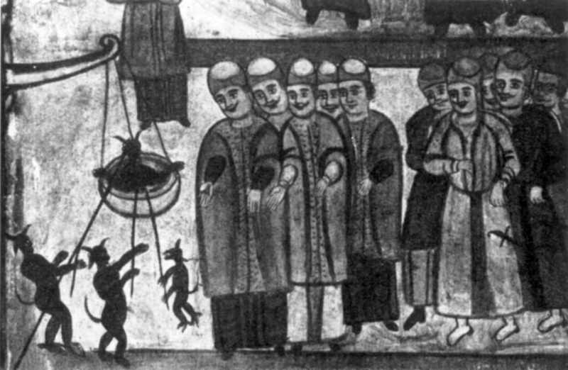 Страшний суд. Ікона 18..19 ст. ФрагментРозмір зображення: 800:522 піксел Страшный суд. Икона XVIII-XIX вв. Фрагмент. Церковь Введения в селе Ростока. Джерело: Логвин Г.Н. Украинские Карпаты. – М.: Искусство, 1973 г., с. 87. |