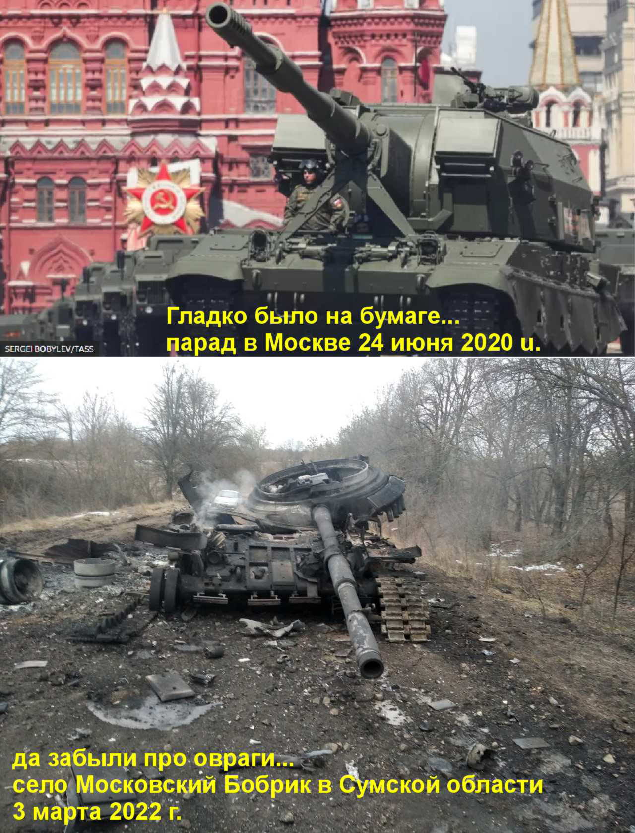 Нижнее фото – техника российского агhессора, уничтоженная в селе Московский (!) Бобрик Сумской области. Фото опубликовано 3 марта 2022 г.