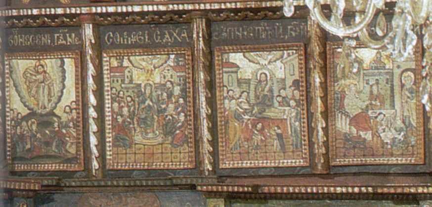 Празниковий ряд. Ліва частина (Преображення; Зішестя св.духа; Успіння; Різдво богородиці [?])Розмір зображення: 874:420 піксел |