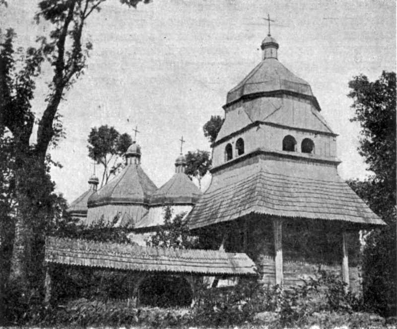 Дзвіниця в с. Солобківці. Фото Є. Сецінського.Джерело: Юрченко П.Г. Дерев’яне зодчество України. – К.: 1949 р., с. 51. Не вказано, яка саме з церков сфотографована. Оскільки церква дерев’яна – думаю, Покровська.