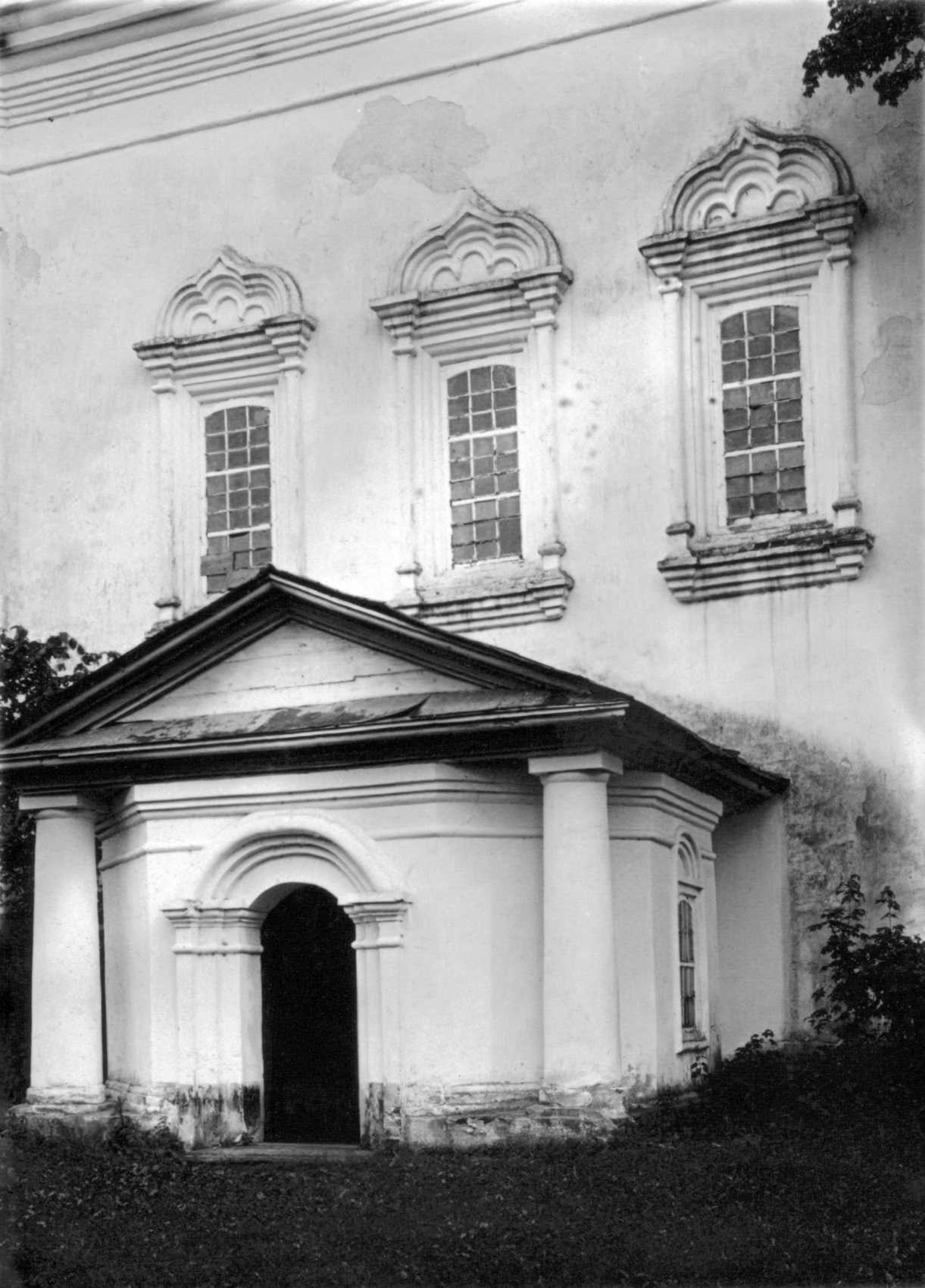 1920-і рр. (?) Фрагмент бічного фасадуРозмір зображення: 1221:1700 піксел Фото Стефана Таранушенка і Павла Жолтовського з експедиції Харківського музею українського мистецтва. 1920-і рр. (?) Опубліковано 30.05.2021 р. |