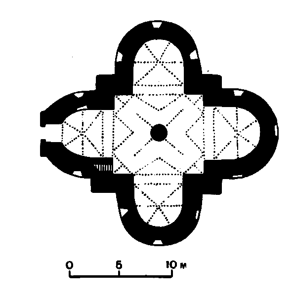 ПланРозмір зображення: 597:598 піксел Покровська церква в Сутківцях. План 1-го ярусу. 1467 р. Обміри П.Юрченка. Джерело: Історія українського мистецтва. – К.: Наукова думка, 1967 р., т. 2, с. 59. |