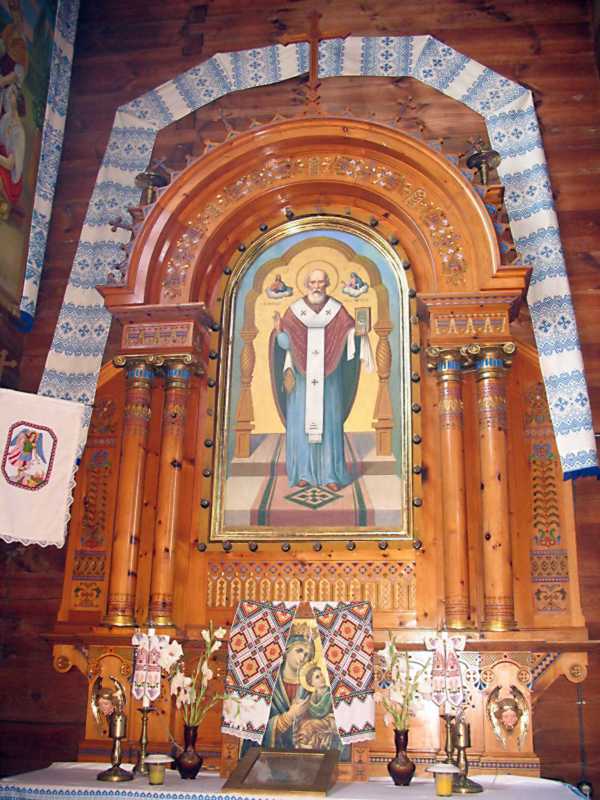 Кіот з іконою св. МиколиРозмір зображення: 600:800 піксел Фото Зенона Боровця і Богдана Тхора, 13 серпня 2008 р. |