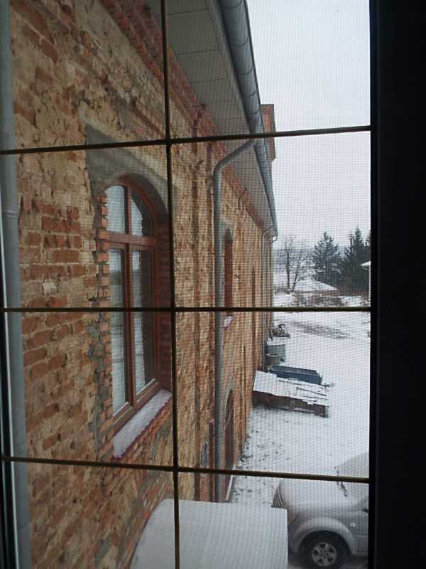 2021 р. Бічний фасад костелуРозмір зображення: 600:800 піксел Вигляд з позиції С1, з вікна корпусу келій 1. Фото І. Ю. Парнікози, 25 грудня 2021 р. |