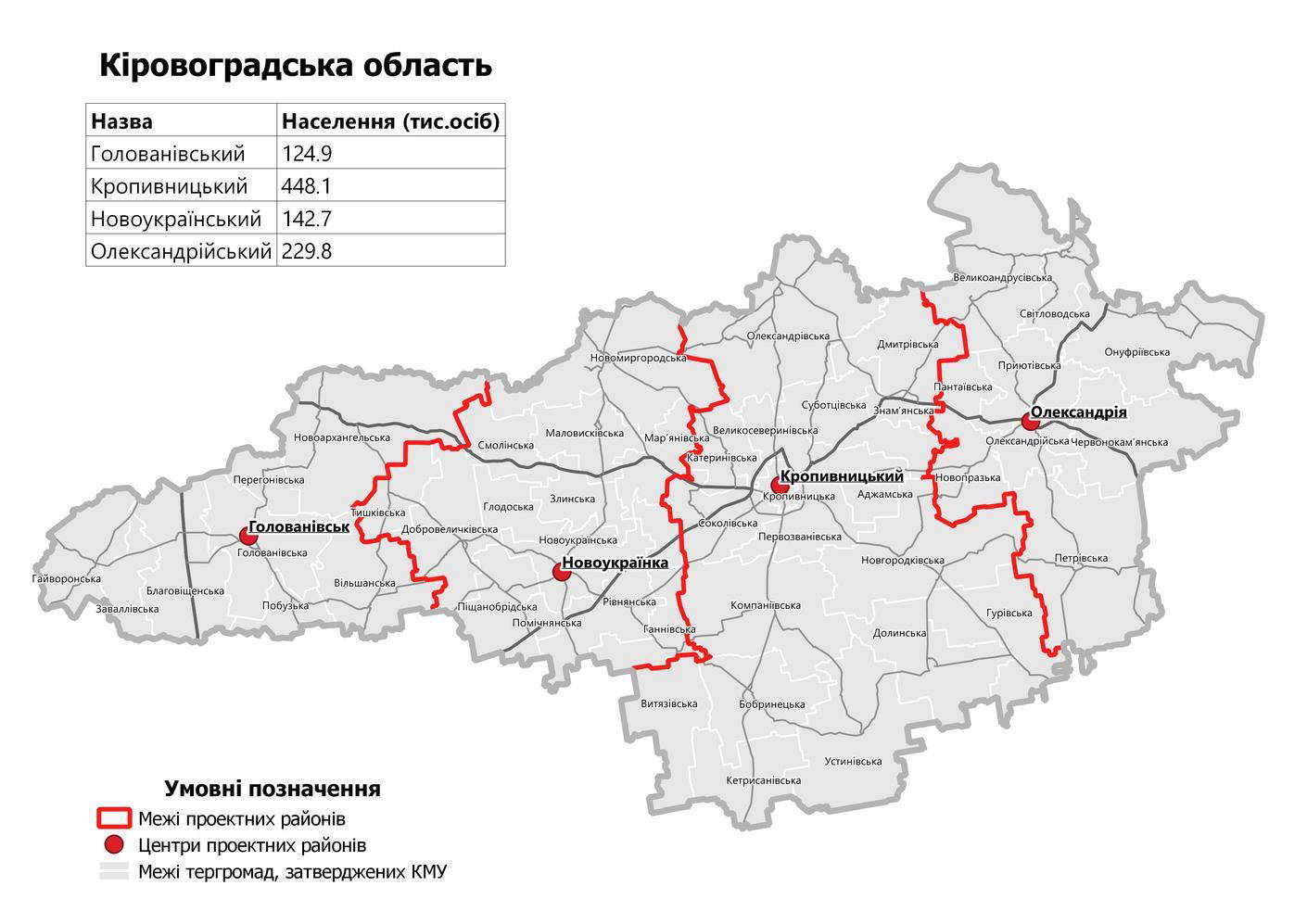 Кіровоградська область утворена 10.01.1939 р. з частин території Київської, Миколаївської Одеської та Полтавської областей. В 1954 р. частина її території була передана до складу новоутвореної Черкаської області, натомість до Кіровоградської області було приєднано частину Одеської області.