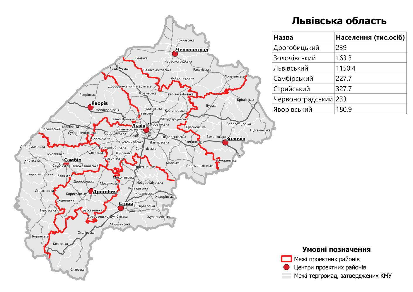 Районний поділ області, який діяв у 1966 – 2020 роках, можна переглянути тут.