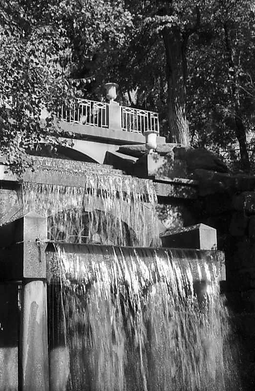 Грот Венеры, 1796-1800 гг. Построен в виде античного храма. Представляет собой глубокую нишу в теле плотины с оригинальным водопадом. Стремление достичь наибольшего эстетического эффекта при движении воды в значительной степени повлияло на конструктивное и художественное решение его отдельных частей. Четыре монолитных гранитных колонны поддерживают аттик из единого блока, над которым расположена небольшая арка, застекленная цветным стеклом. Вход в грот – в виде темного коридора в плотине. Вода в грот поступает из Верхнего пруда через водоразливной канал, который находится под проезжей частью плотины. Затем вдоль вертикальной стены с полуциркульной аркой вода поступает на выступы верхнего яруса, а затем на почти горизонтальную площадку следующего яруса, с которой ниспадает гладкой завесой, прикрывая интерьер грота. Художественная выразительность сооружения усиливается контрастом светлых гладких плоскостей и темных проемов и ниш в соединении с «циклопической» кладкой подпорных стен и вертикальной поверхностью окруженного партерной зеленью водопада. В гроте на высоком постаменте установлена мраморная статуя Венеры Медицейской. Вблизи грота Венеры, у самого основания склона, засаженного вековыми липами, кленами и ясенями, находится Фазанник (1850 г.). Павильон деревянный, круглый в плане в виде ротонды с четырьмя полуциркульными проемами во всю высоту сооружения. Каркасом служат нетесанные бревна березы, узкие простенки покрыты березовой корой и украшены инкрустацией из коры. Ротонда увенчана карнизом большого выноса консольного типа, над которым на ступенчатом барабане поднимается полусферический купол. Внутри павильона находится фонтан.