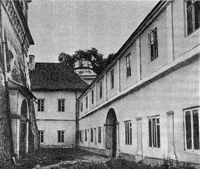 Кельи, XVII-XIX вв. До начала XVIII в. были построены час-тич-но из камня, частично из дерева. Перестроены в XIX и XX вв. Каменные, двухэтажные, занимают западную, северную и восточную стороны двора. Западный корпус имел в нижнем ярусе первоначально открытую аркаду, затем заложенную. Помещения первых этажей перекрыты крестовыми сводами. (с. 173) [Памятники градостроительства и архитектуры УССР. – К.: Будівельник, 1985 г., т. 3, с. 173].