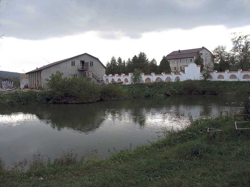 Ліворуч – господарський корпус монастиря, далі направо – біла мурована огорожа. За неї – реколекційний будинок «Прочанин».