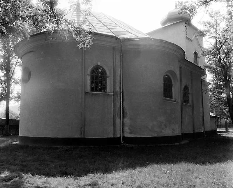 Церква: орієнтація вівтаря 110°, дерев. дзвіниця в позиції А4, головний вхід – в позиції С3, до головної вулиці – С3, в центрі села. Спостереження М.І.Жарких 11.07.1991 р.
