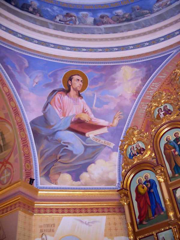 Євангеліст ІоанРозмір зображення: 600:800 піксел Стінопис паруса під куполом. Фото Зенона Боровця і Богдана Тхора, 17 липня 2016 р. |