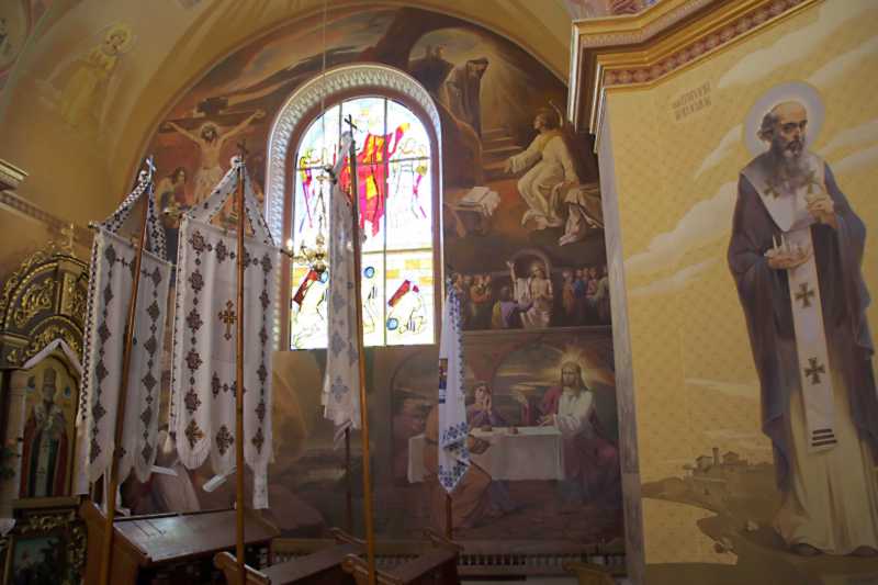 Інтер’єр трансепта (2) Розмір зображення: 800:533 піксел Фото Зенона Боровця і Богдана Тхора, 22 липня 2016 р. Вкладені елементи Ангел Розп’яття Увірування Хоми Ісус і два апостоли Св. Григорій Богослов
