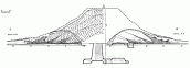 Висота 19.5 м, діаметр 115 – 120 м.