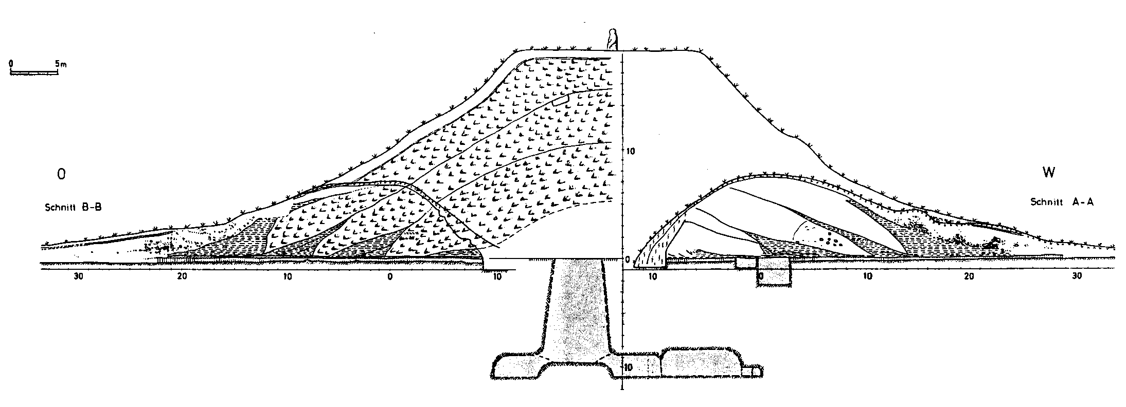 Схематичний переріз в напрямку схід - захід через південно-східний та південно-західний останціРозмір зображення: 2189:792 піксел Джерело: Gold der Steppe: Archaeologie der Ukraine. – Schleswig: 1991, S. 175. |