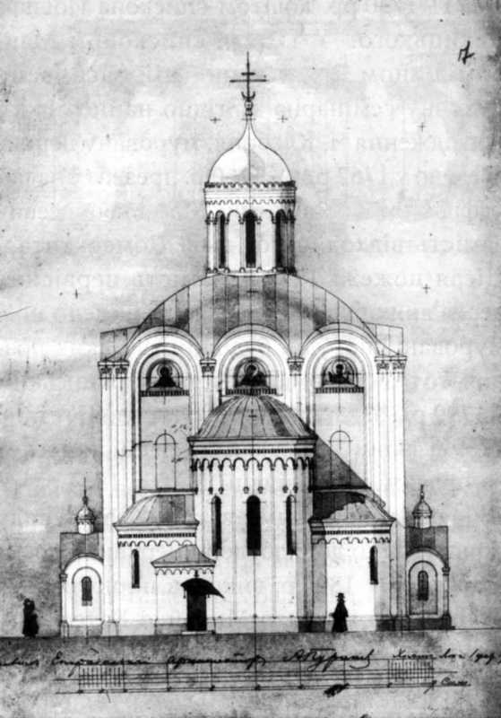 Проект цієї споруди виконав єпархіальний архітектор Александр Пуринґ. 10 В цьому храмі архітектор повторив основні свої мотиви, але дещо видозмінив їх. Ця церква, на відміну від інших, увінчана на кубі нави одною шоломовою банею на світловому барабані. Над бабинцем здіймається низька одноярусна дзвіниця з великими голосниковими арками, завершення якої в мініатюрі повторює завершення нави. Стіни, які передбачалося тинькувати, членували високі півколони з візантійськими капітелями та аркові фризи. Тимпани закомар мали прикрасити зображення Богородиці і святих. В загальному – споруда набирала рис візантійсько-російської архітектури з елементами модернізму.