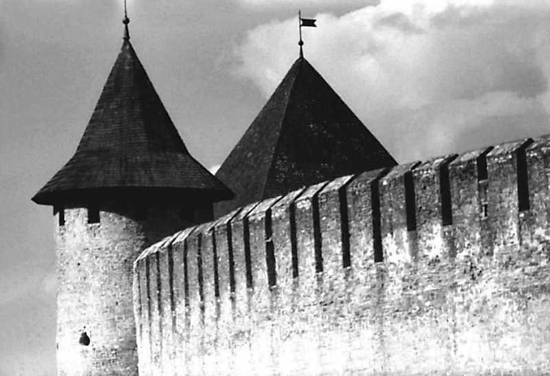 Верхня частина башти і зубці західного муруРозмір зображення: 800:547 піксел 1991 р. 23 липня. Фото М.І.Жарких. Негатека, № 703-08. |